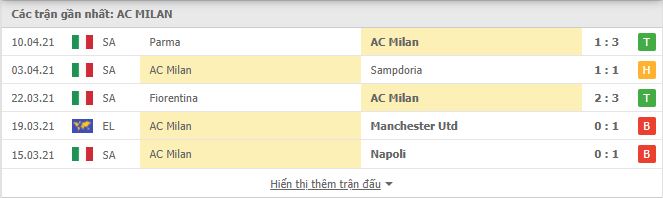 Thống kê phong độ gần đây AC Milan vs Sassuolo