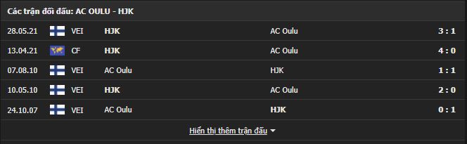 Thành tích đối đầu AC Oulu vs HJK Helsinki: