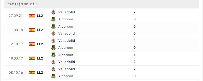 Thành tích đối đầu Alcorcon vs Valladolid:
