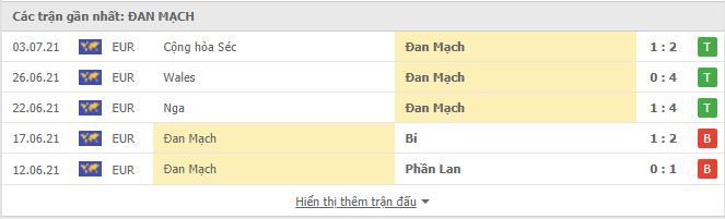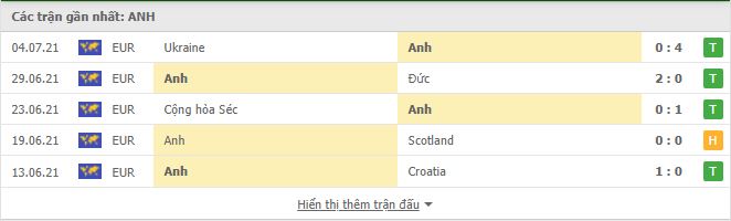 Thống kê phong độ gần đây Anh vs Đan Mạch