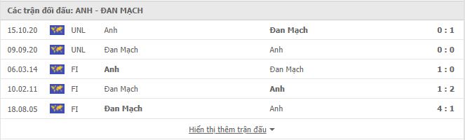 Thành tích đối đầu Anh vs Đan Mạch