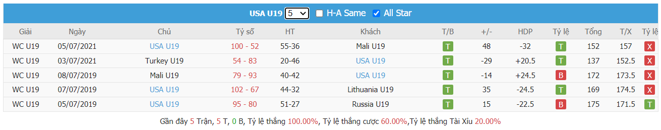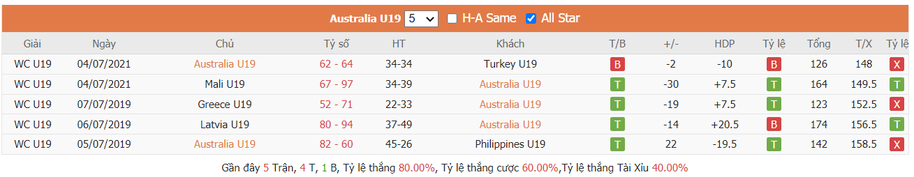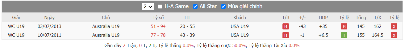 Thống kê cho thấy thánh địa của USA U19 chưa bao giờ là điểm đến dễ dàng với đội chủ nhà Australia U19 khi mà đã có tới 5 trên 6 trận gần nhất hành quân đến đây trong quá khứ, Australia U19 đều không thể ghi điểm nhiều hơn 70 điểm mỗi trận. Vậy nên khả năng bùng nổ tỉ số ở trận đấu tới càng không được kỳ vọng khi mà cả 5 trận kể trên đều đã khép lại với các kết quả chung cuộc về xỉu.
