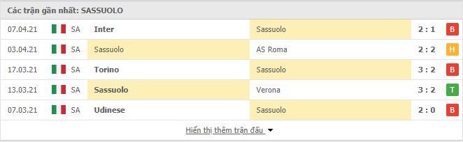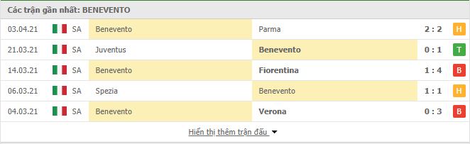 Thống kê phong độ gần đây Benevento vs Sassuolo