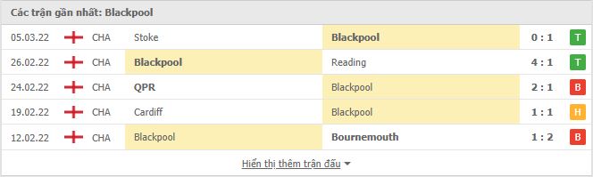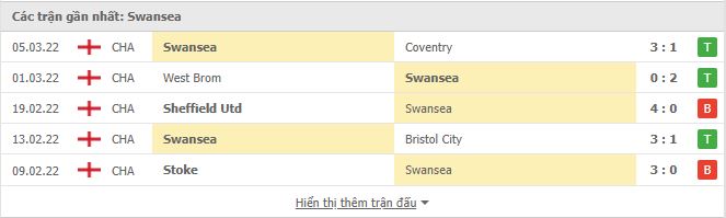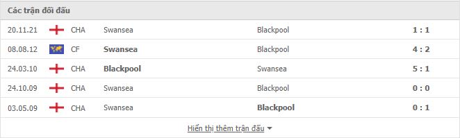 Thống kê phong độ gần đây Blackpool vs Swansea