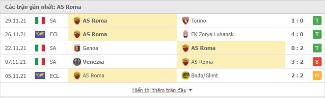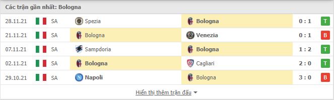 Thống kê phong độ gần đây Bologna vs AS Roma