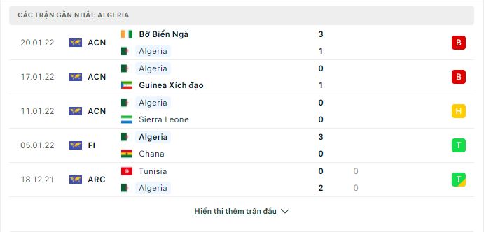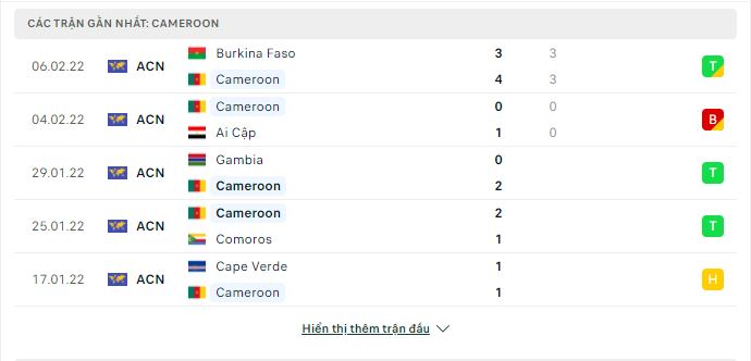 Thống kê phong độ gần đây Cameroon vs Algeria