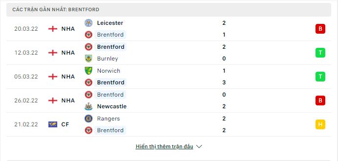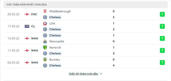 Thống kê phong độ gần đây Chelsea vs Brentford