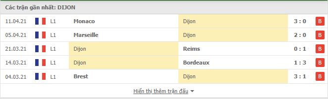Thống kê phong độ gần đây Dijon vs Nice