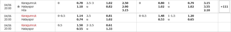 Bảng tỷ lệ kèo bóng đá Fatih Karagumruk vs Hatayspor