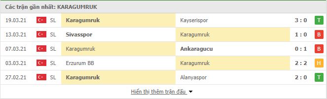 Thống kê phong độ gần đây Fatih Karagumruk vs Hatayspor