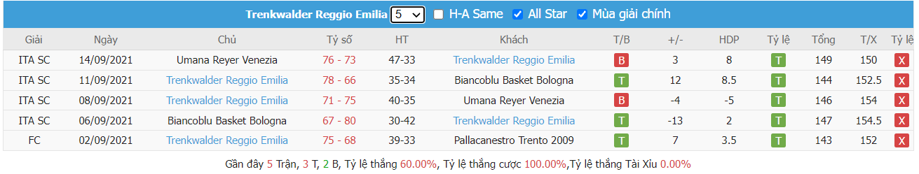 Thành tích đối đầu Fortitudo Bologna vs UNAhotels Reggio Emilia
