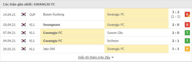 Thống kê phong độ gần đây Gangwon FC vs Gwangju FC