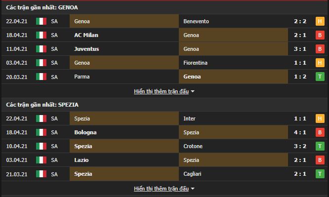 Phong độ gần đây Genoa vs Spezia: