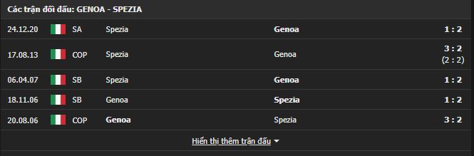 Thành tích đối đầu Genoa vs Spezia: