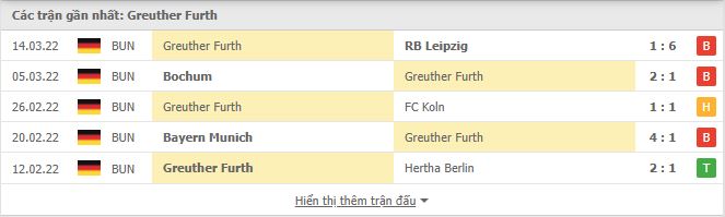 Thống kê phong độ gần đây Greuther Furth vs SC Freiburg