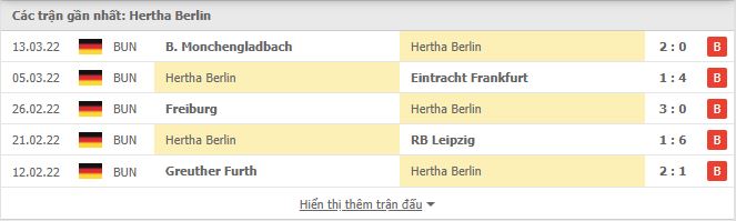 Thống kê phong độ gần đây Hertha Berlin vs 1899 Hoffenheim