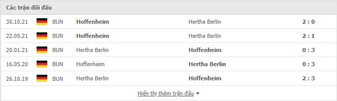 Lịch sử đối đầu Hertha Berlin vs 1899 Hoffenheim