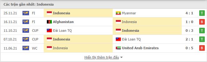 Thống kê phong độ gần đây Indonesia vs Campuchia
