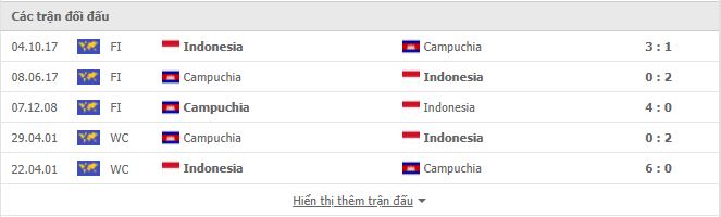 Thành tích đối đầu Indonesia vs Campuchia