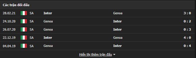 Thành tích đối đầu Inter Milan vs Genoa:
