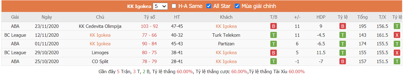 - Phong độ gần đây KK Igokea Aleksandrovac vs KK Borac Čačak