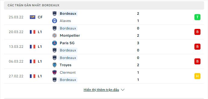 Thống kê phong độ gần đây Lille vs Bordeaux