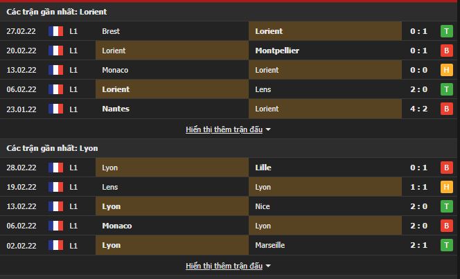 Nên giới chuyên môn tin tưởng Lorient sẽ giành được điểm trước Lyon ở vòng đấu tới đây. Nhận định này càng được củng cố khi mà Lyon đang có phong độ kém cỏi. 4 vòng đấu gần nhất, đoàn quân HLV Bosz chỉ giành được 1 chiến thắng, hòa 1 và thua 2 trận. Riêng thành tích trên sân khách, Lorient không biết mùi thắng lợi ở 4/5 chuyến hành quân xa nhà vừa qua.