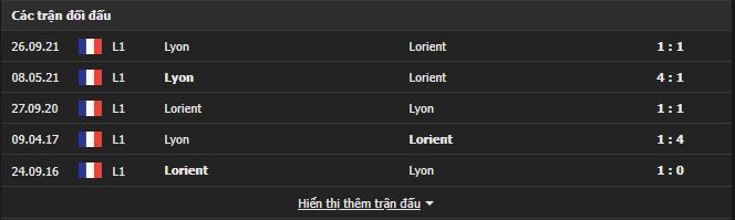 Thành tích đối đầu Lorient vs Lyon: