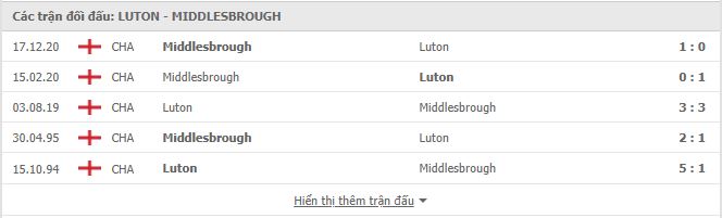 Lịch sử đối đầu Luton vs Middlesbrough