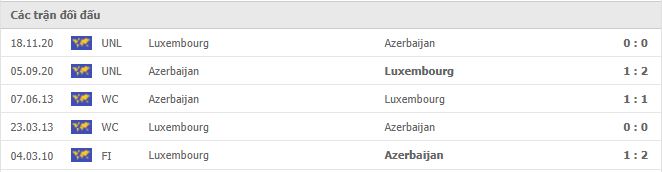 Lịch sử đối đầu Luxembourg vs Azerbaijan