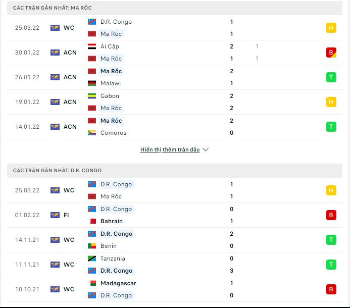 Phong độ gần đây Ma Rốc vs D.R. Congo: