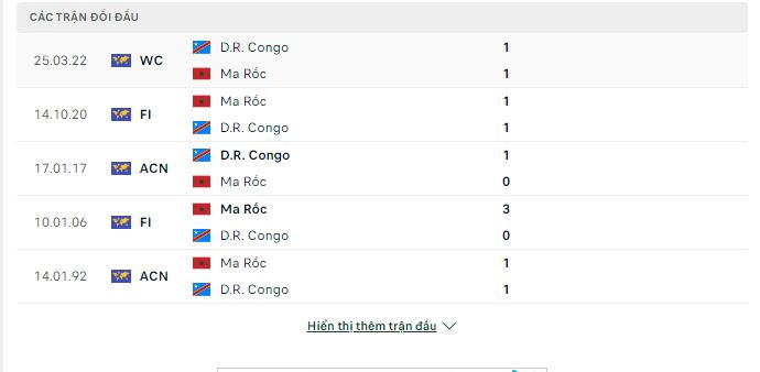 Thành tích đối đầu Ma Rốc vs D.R. Congo:
