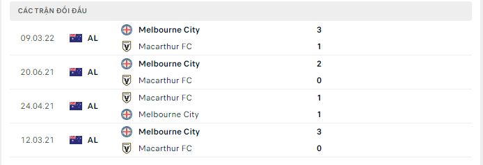Thành tích đối đầu Macarthur FC vs Melbourne City: