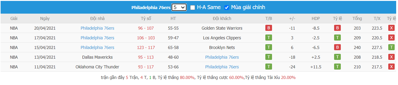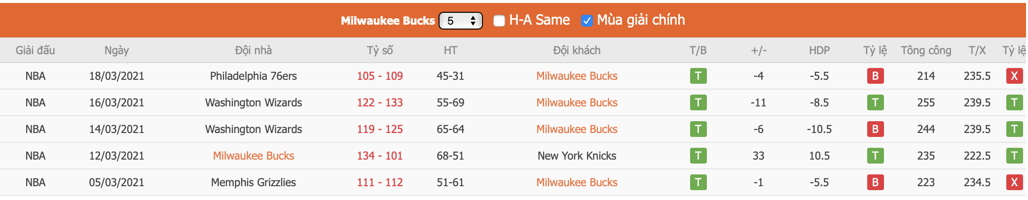 Thống kê cũng chỉ ra sự áp đảo hoàn toàn về thành tích đối đầu cũng như thực lực nhân sự trước đội chủ nhà sẽ là cơ sở để Philadelphia 76ers có thể sẽ tự tin hơn và sẳn sàng dâng cao tấn công ngay sau khi trọng tài tung bóng nhằm tìm kiếm thêm chiến thắng. Như vậy cửa tài vẫn sẽ là sự lựa chọn sáng hơn cả nhất là khi mà đã có tới 6 trên 8 trận gần nhất của đội khách Philadelphia 76ers cũng đã có kết quả chung cuộc nổ tài. Đồng thời cũng đã có tới 4 trên 6 trận gần nhất của đội chủ nhà Milwaukee Bucks cũng đã có kết quả tương tự.
