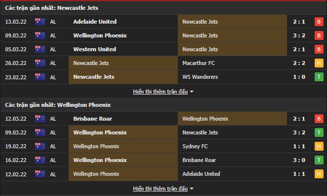 Phong độ gần đây Newcastle Jets vs Wellington Phoenix: