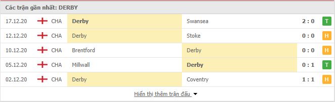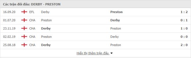 Thống kê phong độ & Lịch sử đối đầu Derby vs Preston