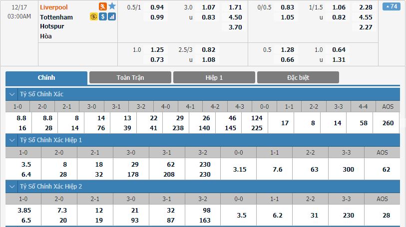 - Tỷ lệ kèo bóng đá Liverpool vs Tottenham