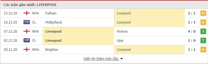 Thống kê phong độ & Lịch sử đối đầu Liverpool vs Tottenham