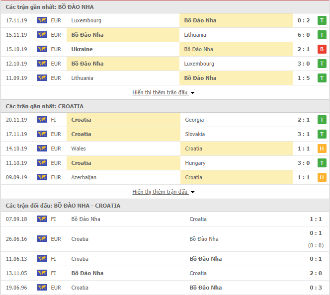 Thống kê phong độ & Lịch sử đối đầu Bồ Đào Nha vs Croatia