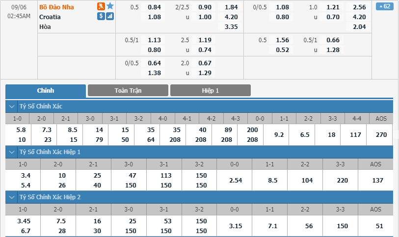 - Tỷ lệ kèo bóng đá Bồ Đào Nha vs Croatia