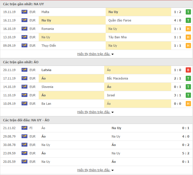 Thống kê phong độ & Lịch sử đối đầu Na Uy vs Áo