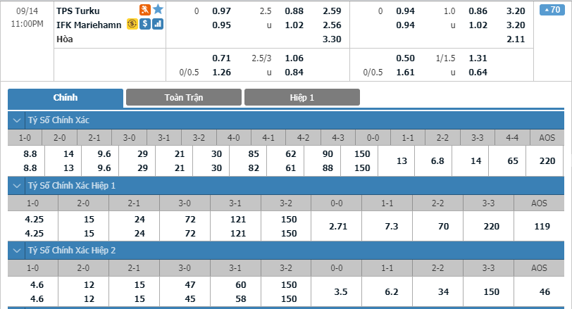 - Tỷ lệ kèo bóng đá Turku PS vs IFK Mariehamn