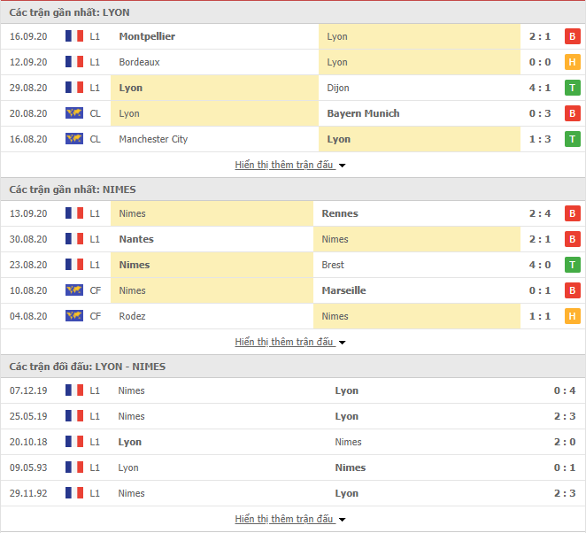 Thống kê phong độ & Lịch sử đối đầu Lyon vs Nimes