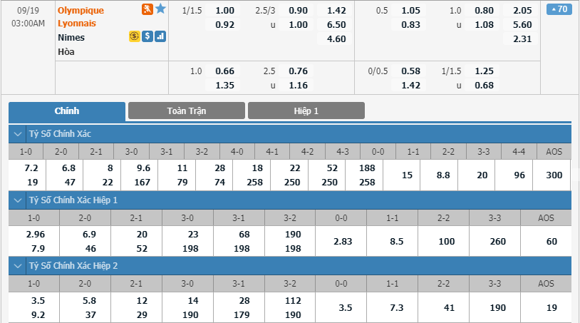 Tỷ lệ kèo bóng đá Lyon vs Nimes