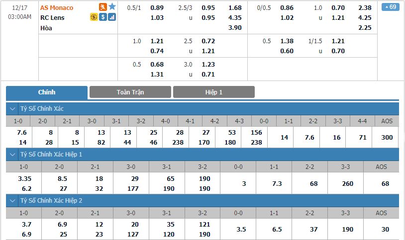 - Tỷ lệ kèo bóng đá Monaco vs Lens