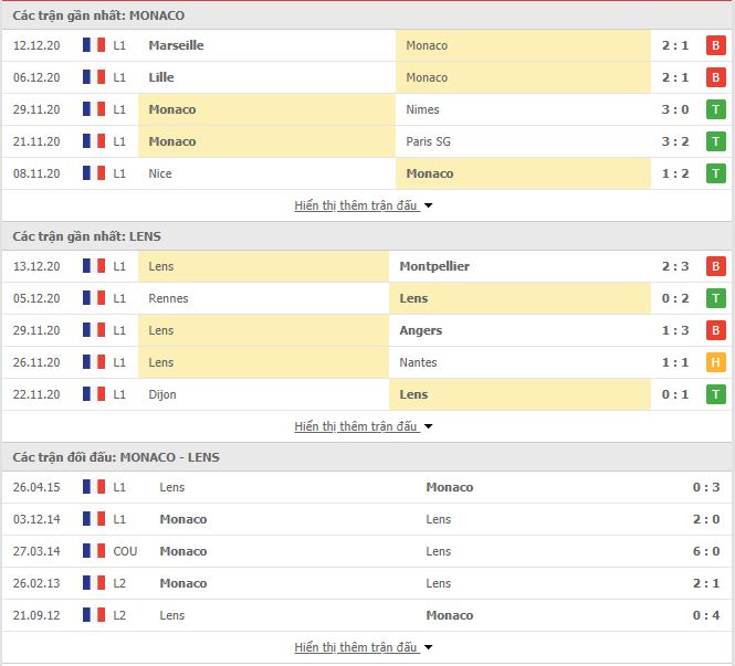 Thống kê phong độ & Lịch sử đối đầu Monaco vs Lens