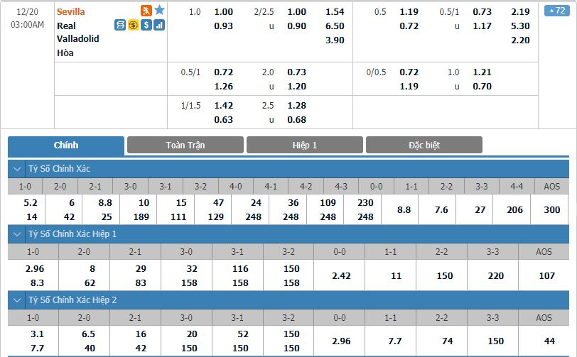 - Tỷ lệ kèo bóng đá Sevilla vs Valladolid