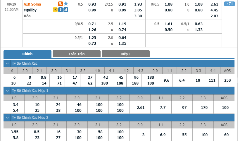 - Tỷ lệ kèo bóng đá AIK Stockholm vs Mjallby AIF