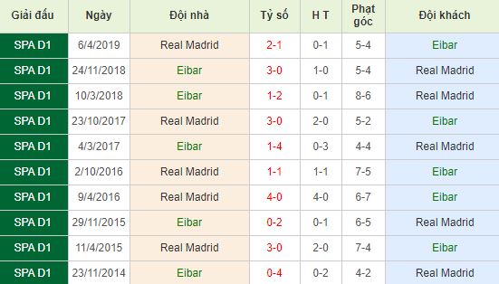 Lịch sử đối đầu Eibar vs Real Madrid