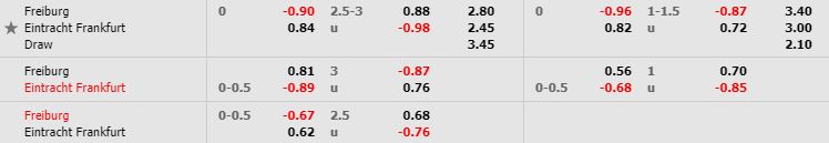 Tỷ lệ kèo bóng đá Freiburg vs Eintracht Frankfurt